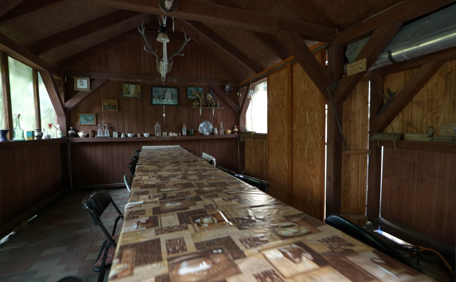 Het gebouw heeft twee verdiepingen, bijna 200 vierkante meter bruikbare oppervlakte en er zijn enorme bijgebouwen beschikbaar. Die naast de huidige functie (eetkamer, berging, nieuwe eetkamer en ontspanningsruimte)